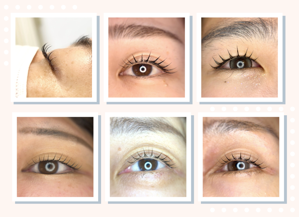 自まつ毛に負担がかからないようにたくさんの長さや太さのエクステを使い、自まつ毛があるだけ付けていきます。